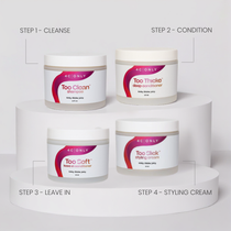 step 1: on freshly cleansed and conditioned coils, apply the too soft leave-in conditioner throughout your 4C hair